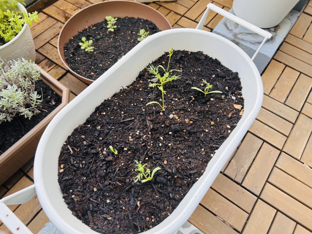 グリーンラボチームで植えたコスモスの種も芽をだし育っていました。