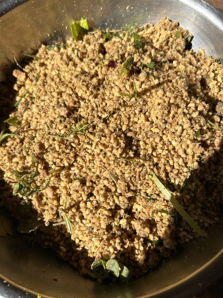 秋の終わりに、豆麹とお塩と庭のハーブをまぜまぜして仕込んだお味噌。