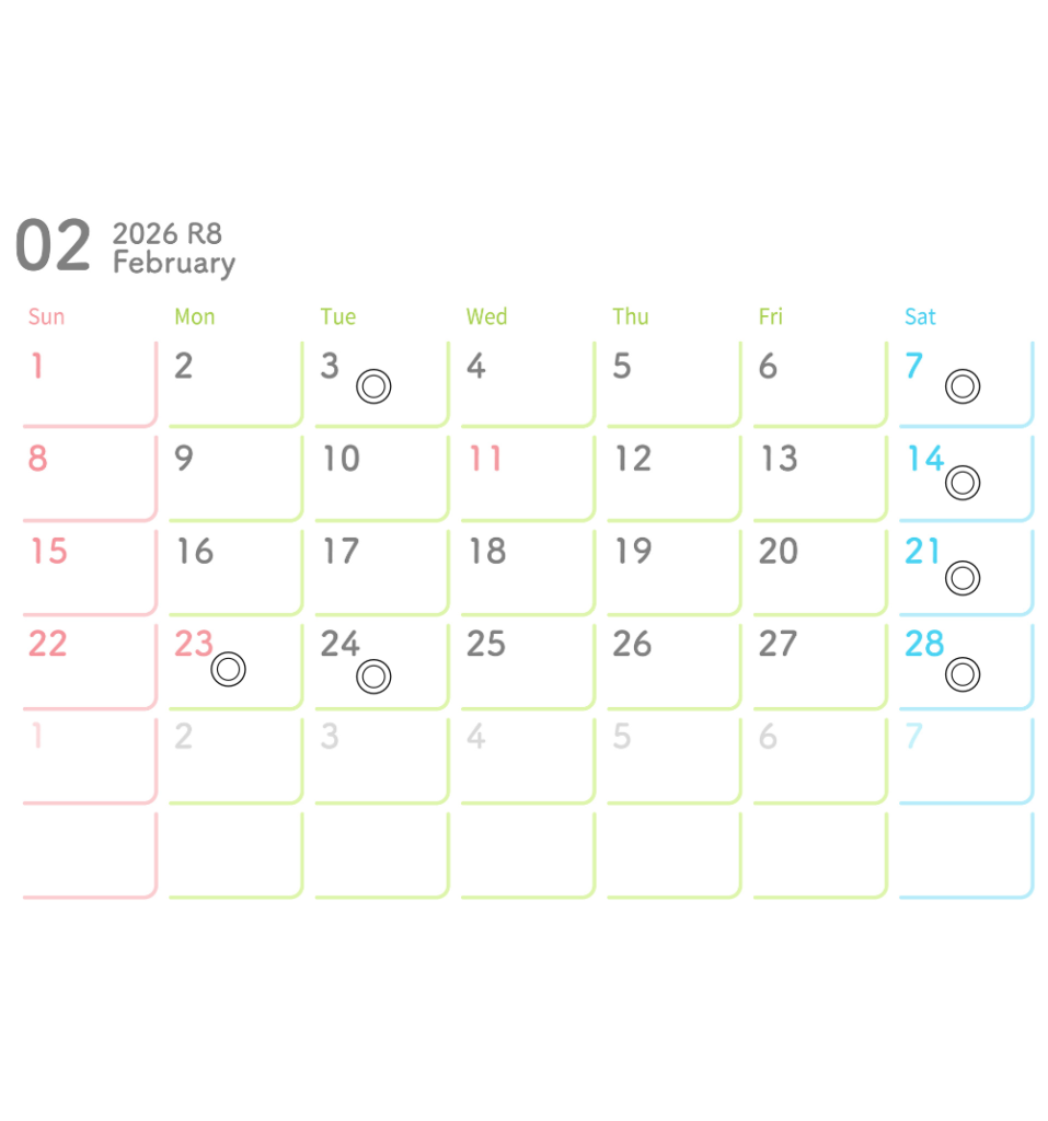 2月のカレンダー